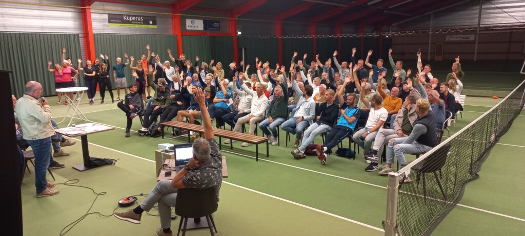 25 september was het zover: de extra Algemene Ledenvergadering met als voorstel: uitbreiding met 2 padelbanen ten koste van tennisbaan 5. Een unieke gebeurtenis: een wachtrij om je te registreren als stemgerechtigd lid. Bijna 90 aanwezige leden luisterden naar de presentatie van de padelcommissie en de penningmeester met informatie over de feiten en cijfers om 2 extra padelbanen aan te leggen. Hierna werd tot stemming overgegaan: bijna alle aanwezigen stemden voor. De voorbereidingen waren al begonnen, maar het bestuur kan nu verder. We hopen dat uiterlijk in april 2024 de 2 extra padelbanen gereed zijn.