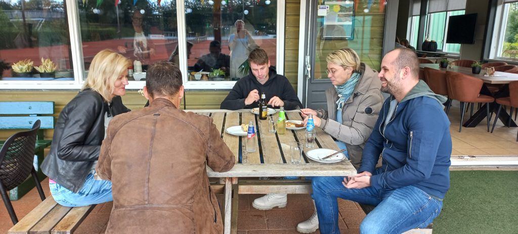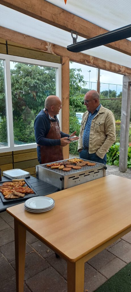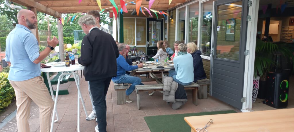 Zaterdag 15 juni was weer de afsluitende BBQ voor alle competitieteams. Ook andere leden waren welkom. Helaas werkten de weergoden niet echt mee, maar dankzij de overkapping konden we allemaal lekker zitten. Ook de kampioenen vanaf de najaarscompetitie 2023 t/m voorjaarscompetitie 2024 zijn gehuldigd. Het was weer een gezellig feestje. Hieronder een sfeerbeeld.