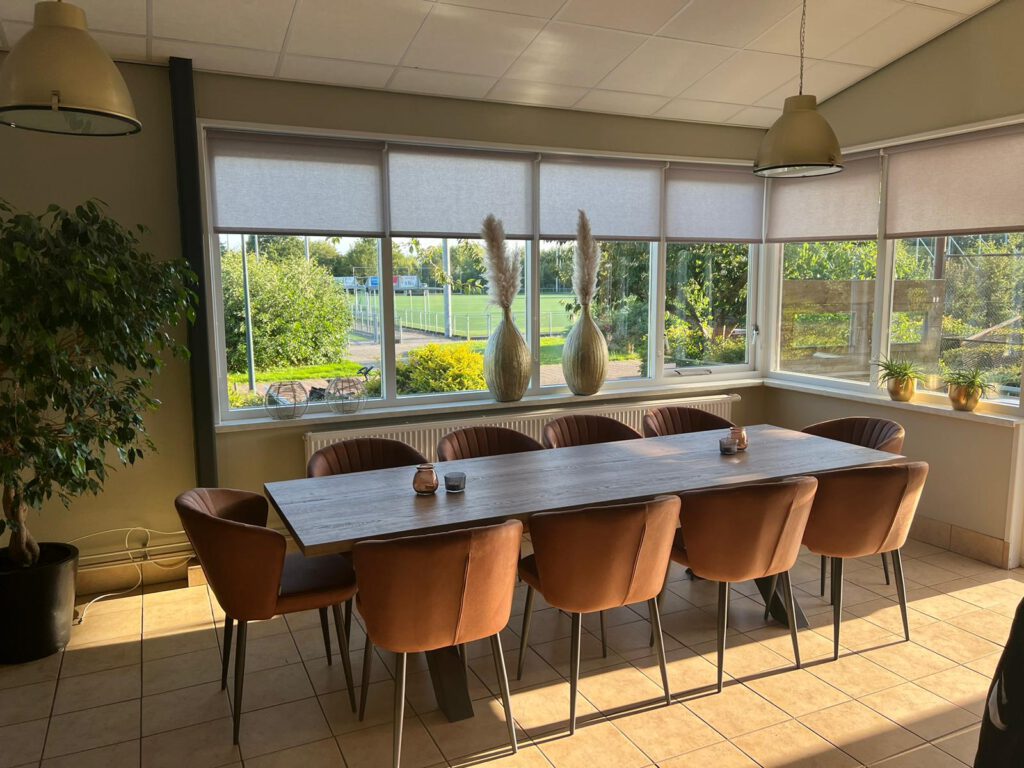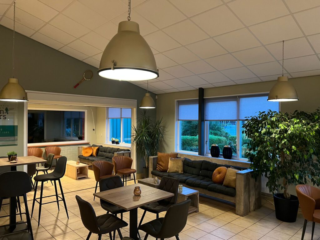 De afgelopen periode hebben een aantal leden een kritische blik op de inrichting van de kantine geworpen. Ze vonden dat deze wel een update kon gebruiken. Cobi, Francis, Anne-Rixt en Femke zijn aan de slag gegaan met leuke ideeën. Met een beperkt budget zijn ze er in geslaagd om een totaal andere, gezellige sfeer te creëren in onze kantine. Met vereende krachten hebben ze de muren geschilderd, lampen overgespoten, nieuw meubilair aangeschaft en in elkaar gezet. Met kleine accenten, zoals nieuwe kussens, het schilderen van de vazen en een andere indeling, ziet alles er heel anders en fris uit. Een dikke pluim voor deze dames. Hieronder een kleine impressie van het resultaat.