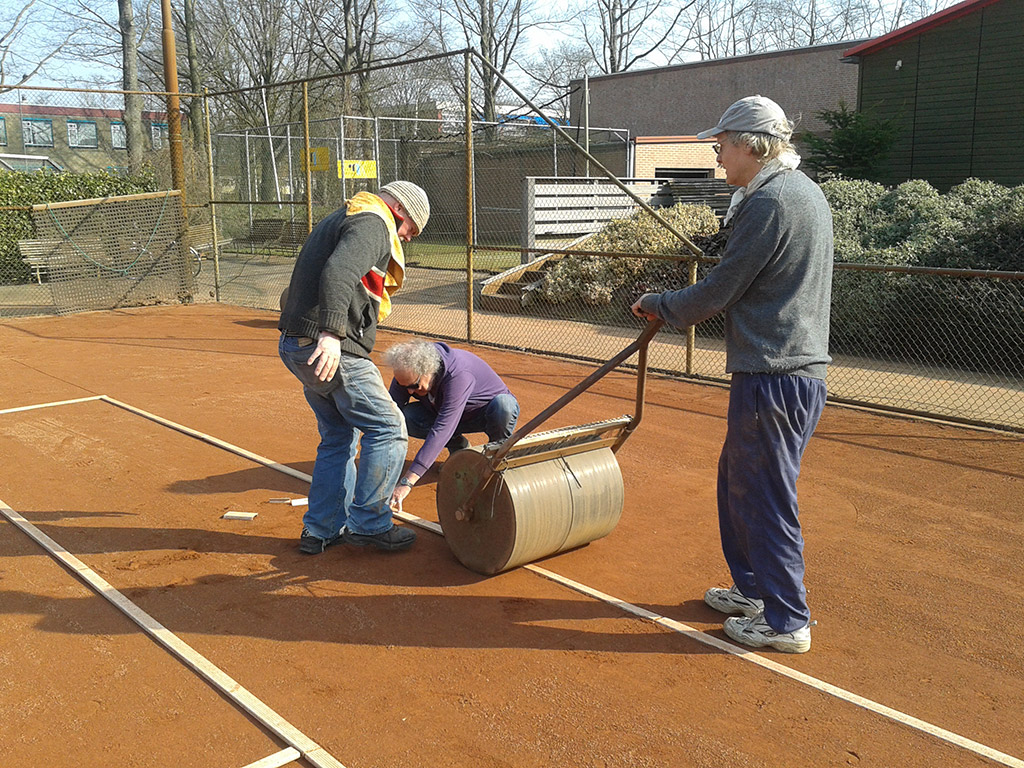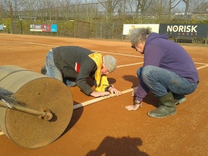 Baancommissie druk in de weer om de banen voor het nieuwe seizoen weer tip-top in orde te krijgen. Klasse mannen !!!