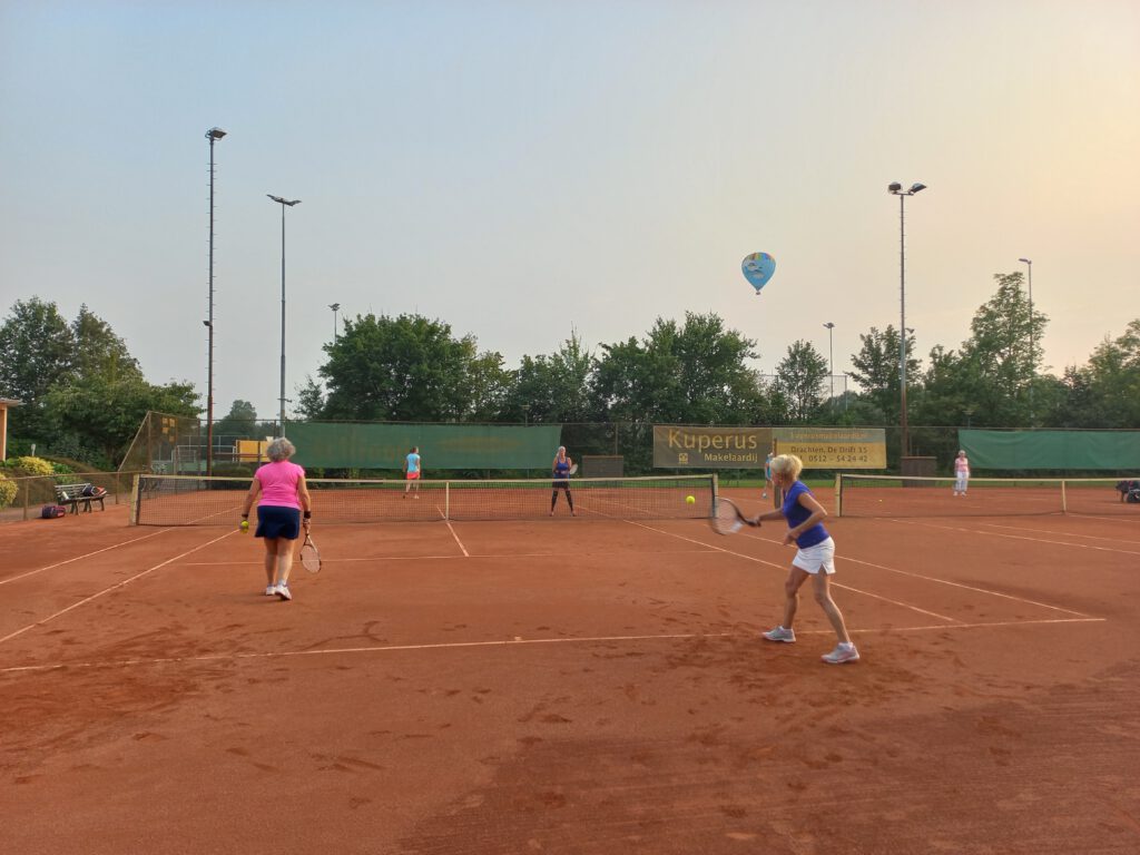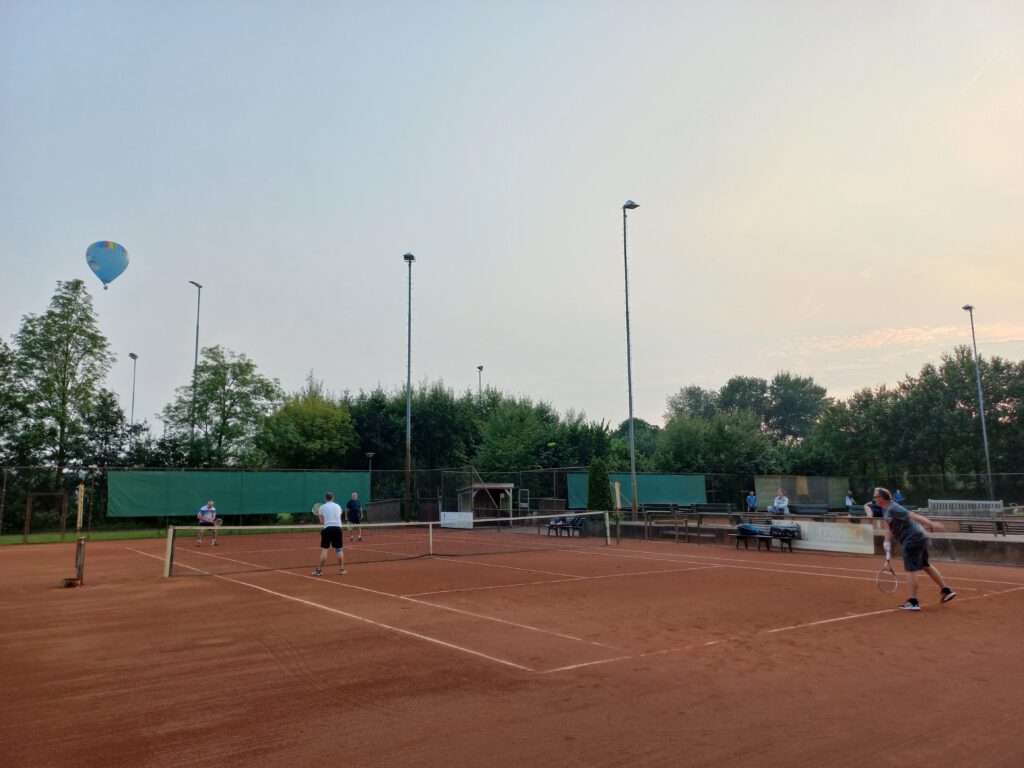 Alle wedstrijden konden in 4 avonden gespeeld worden, dus donderdagavond waren de laatste wedstrijden. Met prachtige luchten als achtergrond en zelfs een luchtballon kunnen we terugkijken op een geslaagd toernooi.