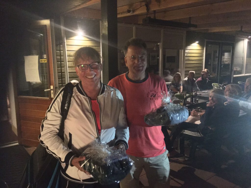in de HD 1 waren 4 koppels die zich hebben opgegeven. Riano verving de geblesseerde Jan. Ook hier werden mooie partijen gespeeld. Jeroen/Henk, Jeen/Jos en Hein Jan/Pieter deden hun best, maar uiteindelijk trokken Gerrit en Riano aan het langste eind en mogen zich clubkampioen HD 1 noemen.