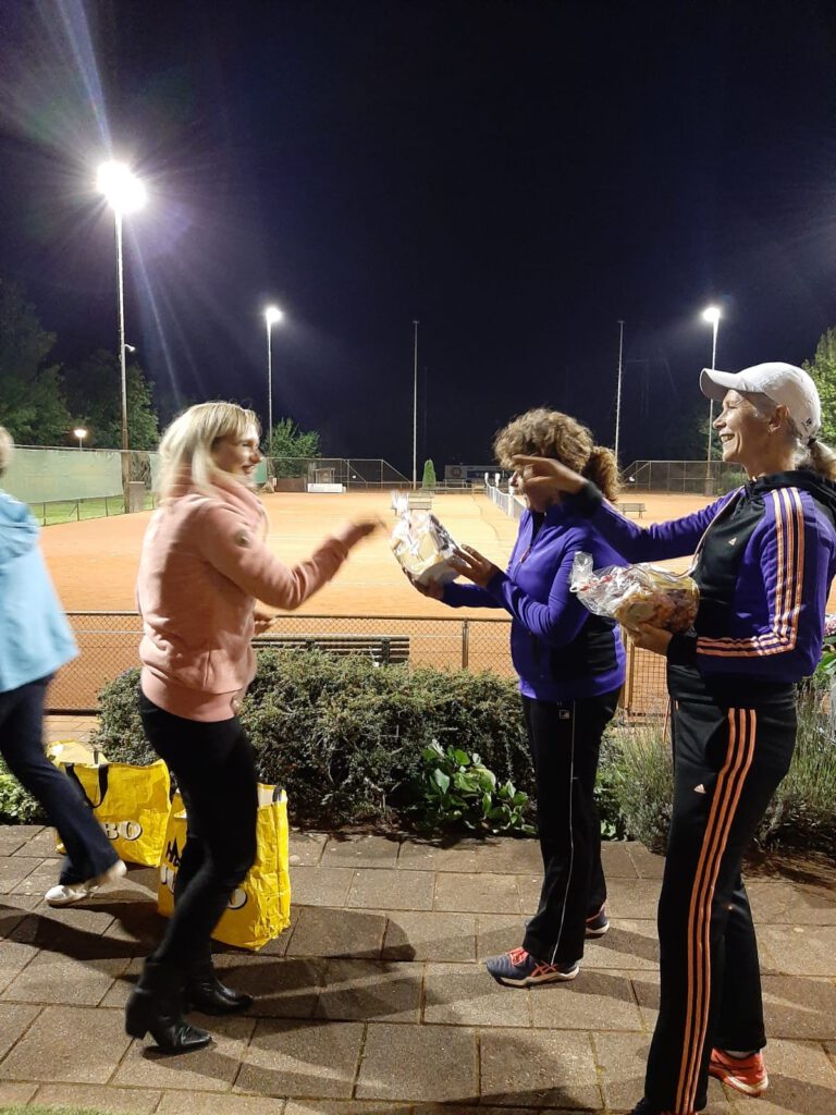 In de andere damesdubbelpoule verliep ook alles anders. Na 2 wedstrijden gespeeld te hebben moest Ydwine Gietema opgeven met een rugblessure. Ook de partner van Dea Dijkstra, Jannie Sloot, moest vrijdag besluiten om op te geven vanwege een blessure. Helaas betekende dat dat de finalepartij tussen Jannie/Dea en Gretha van Veen/Geke Spinder daarmee beslist was. Alle dames wilden echter wel hun wedstrijden spelen. Dus Anja de Bruin viel in voor Ydwine en speelde samen met Jestine Gietema de partij tegen Hanny Schroor en Tineke Erkelens. Helaas raakte Hanny tijdens de wedstrijd geblesseerd. Dea Dijkstra nam deze partij van haar over. Jestine en Anja wonnen. Daarna werd de wedstrijd Geke/Gretha tegen Jestine/Dea gespeeld. De eerste set was heel spannend en eindigde in 7 5 voor Geke/Gretha. Omdat het anders veel te lang duurde werd de partij onderbroken door de prijsuitreiking. Daarna speelden ze nog een 2e set die ook door Geke/Gretha werd gewonnen. Zij zijn dus clubkampioen 2020.