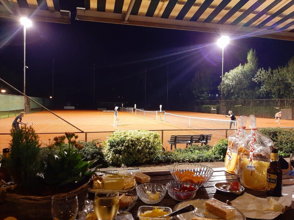 Na deze bizarre vrijdagavond werd op gepaste afstand nog lekker lang nagenoten van een prachtige tennisweek.