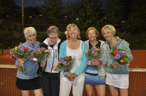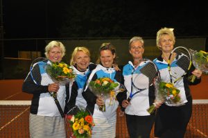 dinsdagavond team 3, kampioen in de 3e klasse: Agnes Kuperus, Jellie Wissels, Anneke Bakker, Liesbeth Agricola, Gea Geuze