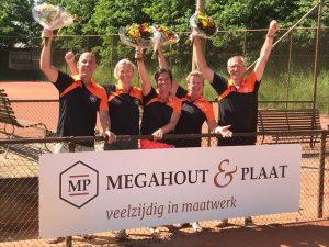 zondagteam mix 1, kampioen in de hoofdklasse: Gretha van Veen, Martine Hogendijk, Dea Dijkstra, Gerrit de Bruin, Tom Vink en niet op de foto: Arjen Klipp en Alfred Veldman
