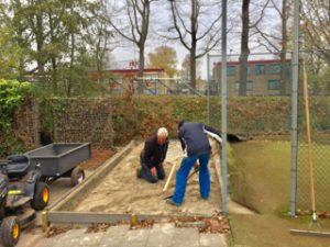 Eindelijk is het dan zover, het oefenveldje kan weer ‘open’ verklaard worden. De lengte van het veldje is 2,40 m langer geworden en voldoet nu aan de richtlijnen en
