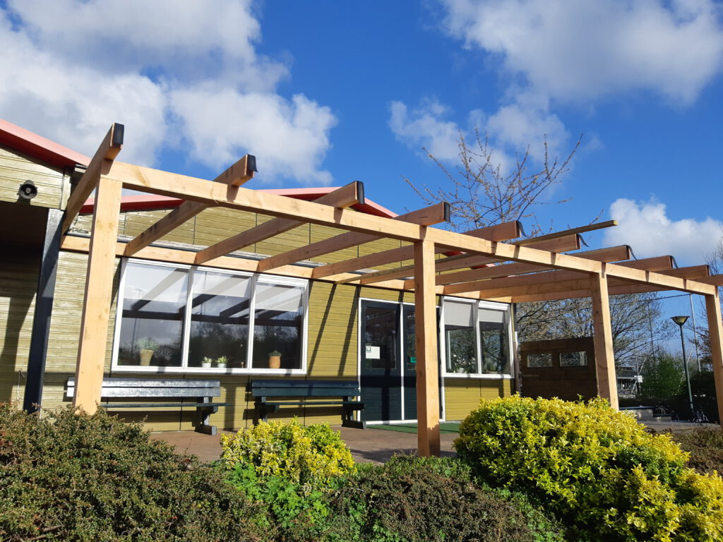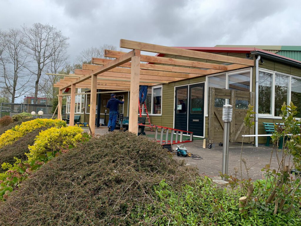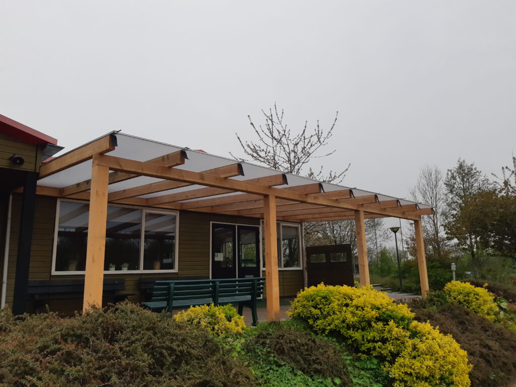 Afgelopen week is dan eindelijk de overkapping van ons terras gebouwd. Na een paar weken vertraging van het materiaal, wat vastzat in het Suez-kanaal, is in 2 dagen de overkapping geplaatst. De afwerking (goten etc.) vindt binnenkort plaats. Ook worden er nog heaters gemonteerd. Nu maar hopen dat we er snel gebruik van kunnen maken als onze gezellige kantine weer open mag.