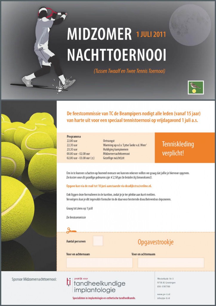 De feestcommissie van TC de Beampipers nodigt alle leden (vanaf 15 jaar) van harte uit voor een speciaal tennistoernooi op vrijdagavond 1 juli a.s.